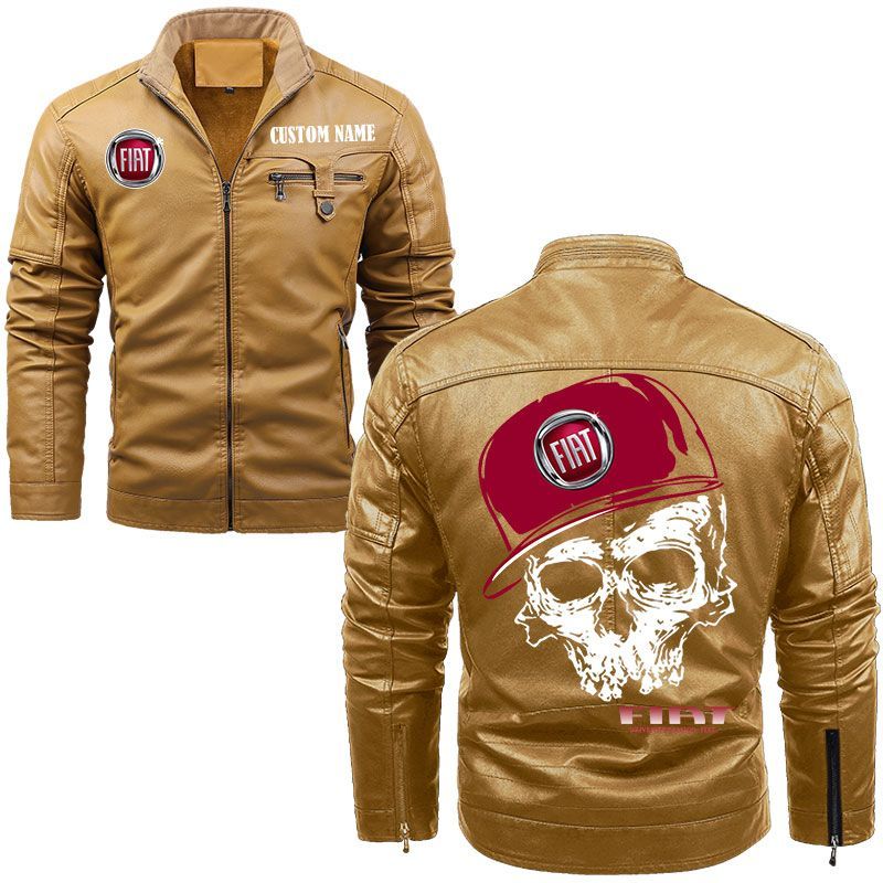 Custom Name Skull Design Fiat Zip Pocket Fleece Leather Jacket