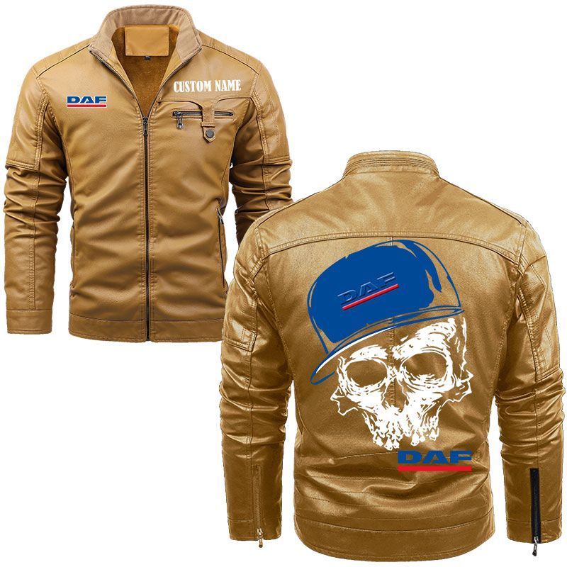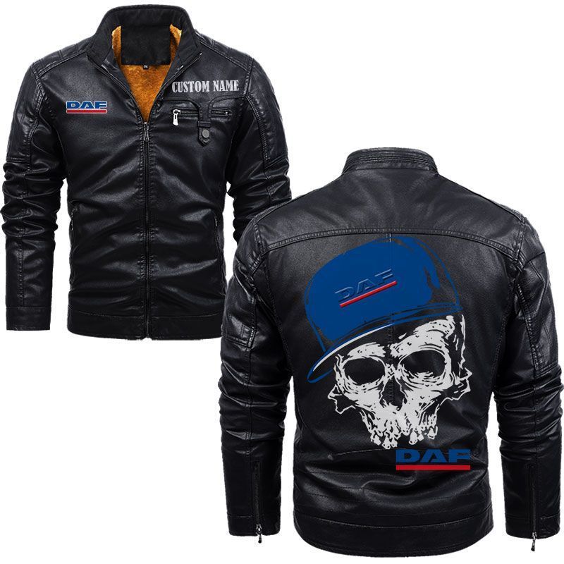 Custom Name Skull Design Daf Zip Pocket Fleece Leather Jacket