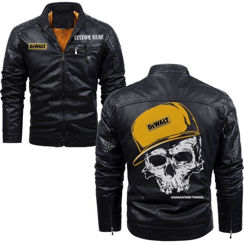 Custom Name Skull Design DeWalt Zip Pocket Fleece Leather Jacket
