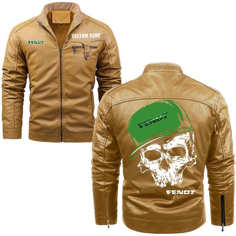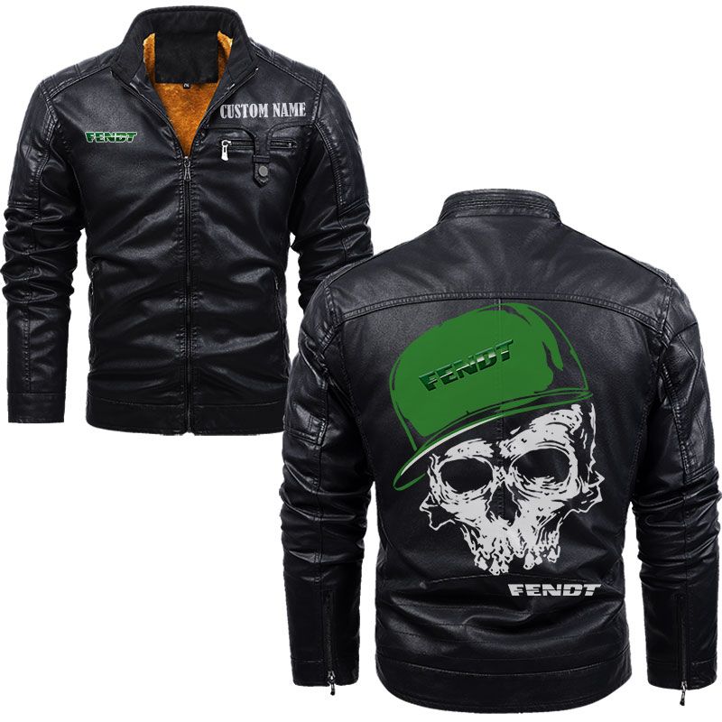 Custom Name Skull Design Fendt Zip Pocket Fleece Leather Jacket