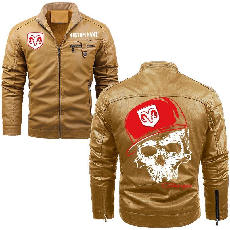Custom Name Skull Design Dodge Zip Pocket Fleece Leather Jacket