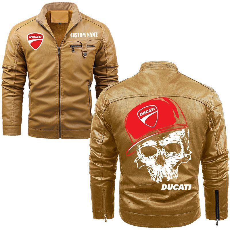 Custom Name Skull Design Ducati Zip Pocket Fleece Leather Jacket