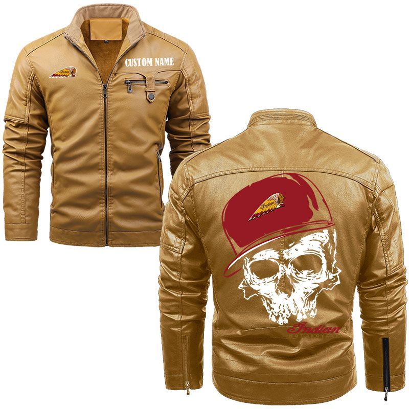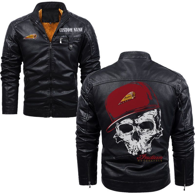 Custom Name Skull Design Indian Zip Pocket Fleece Leather Jacket