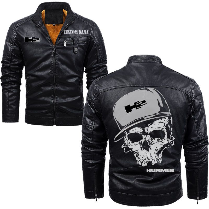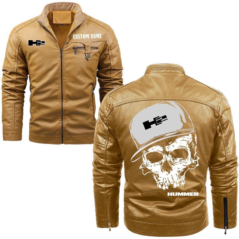 Custom Name Skull Design Hummer H2 Zip Pocket Fleece Leather Jacket