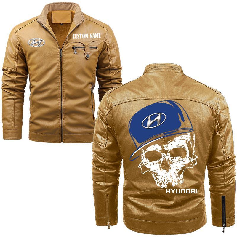 Custom Name Skull Design Hyundai Zip Pocket Fleece Leather Jacket