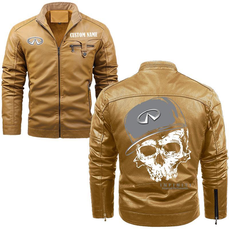 Custom Name Skull Design Infiniti Zip Pocket Fleece Leather Jacket
