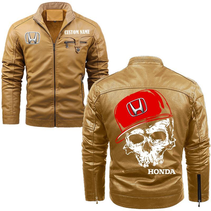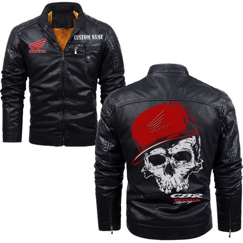 Custom Name Skull Design Honda Zip Pocket Fleece Leather Jacket