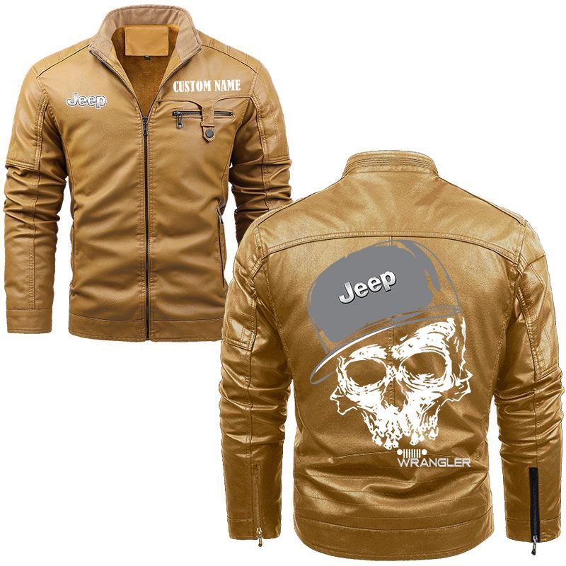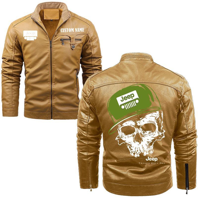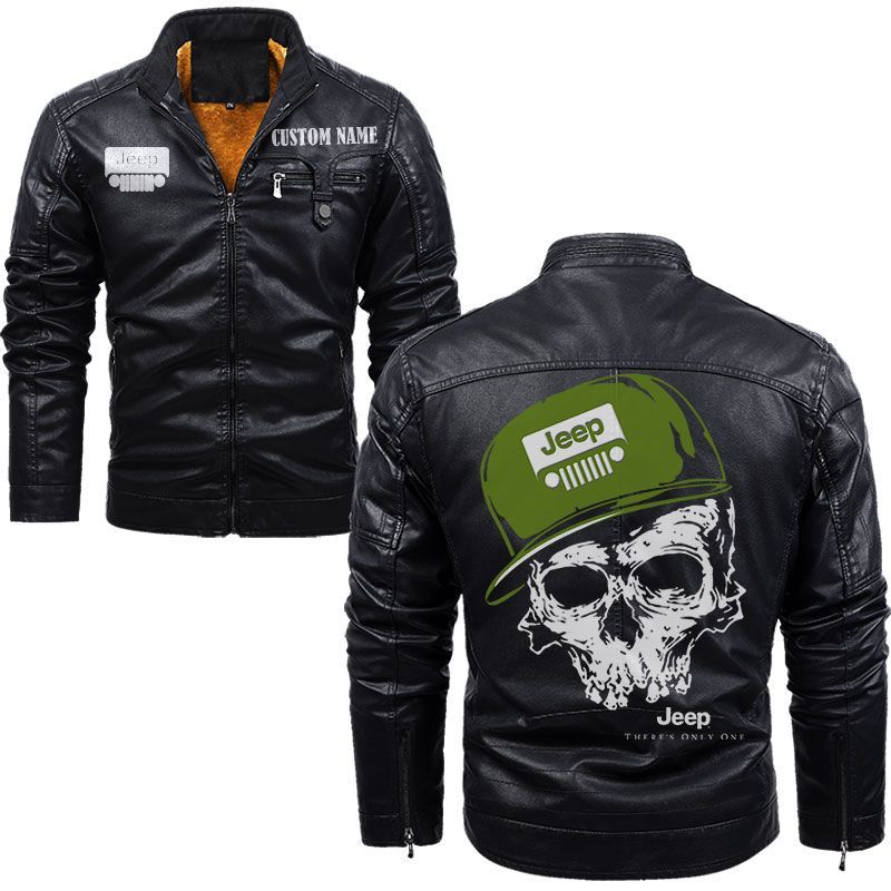 Custom Name Skull Design Jeep wrangler Zip Pocket Fleece Leather Jacket