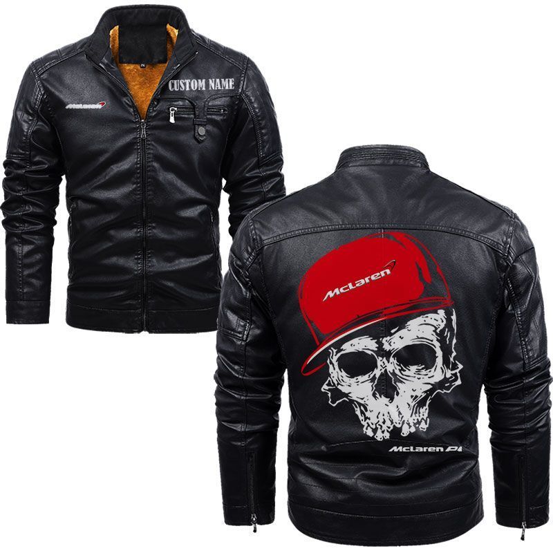 Custom Name Skull Design McLaren Automotive Zip Pocket Fleece Leather Jacket