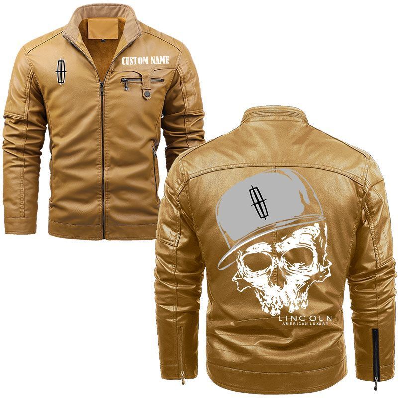 Custom Name Skull Design Lincoln Zip Pocket Fleece Leather Jacket
