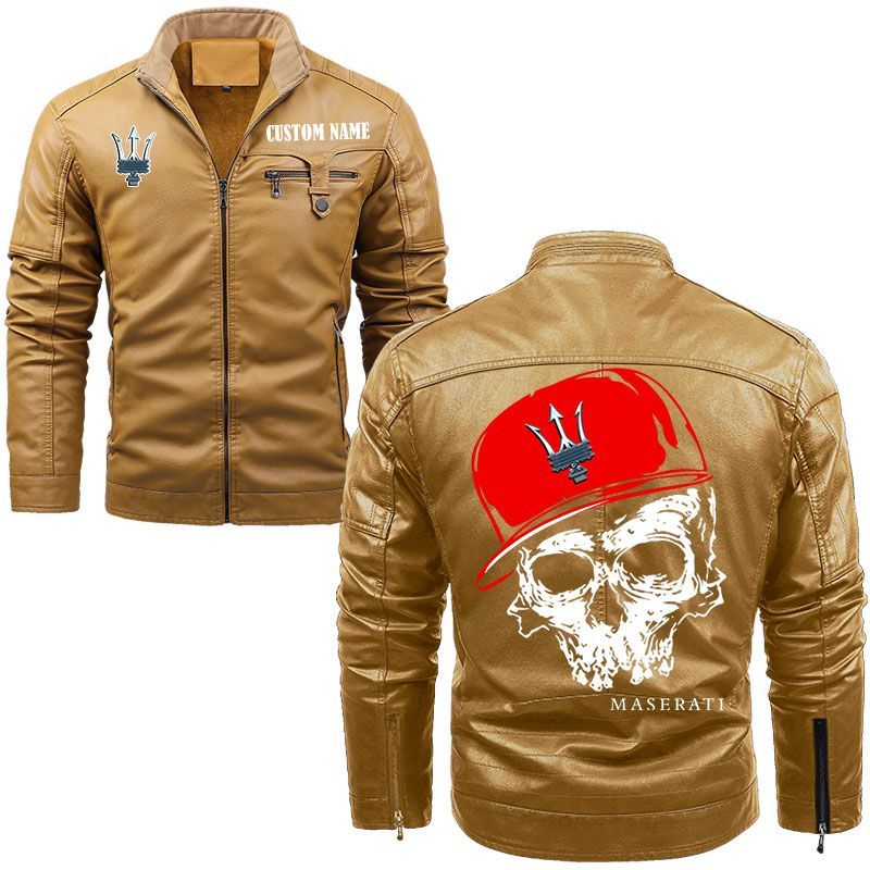 Custom Name Skull Design Maserati Zip Pocket Fleece Leather Jacket