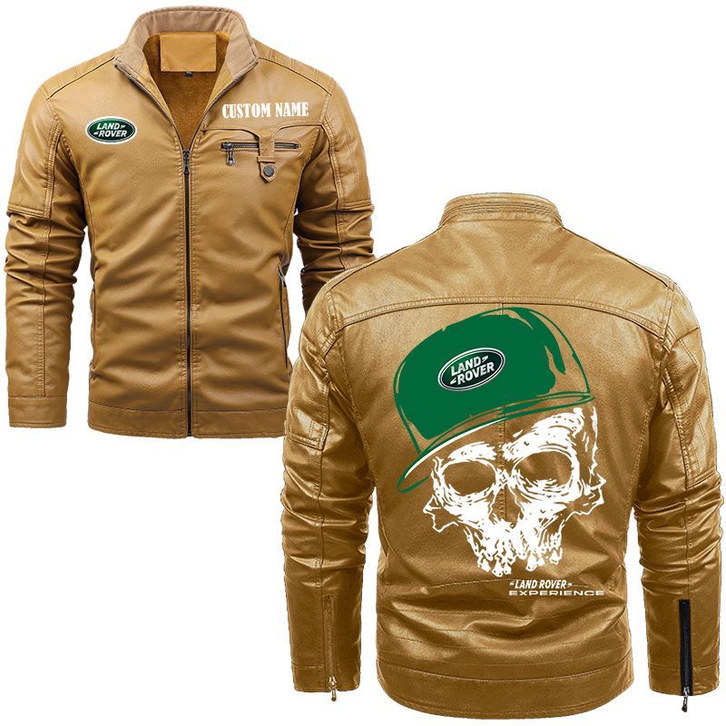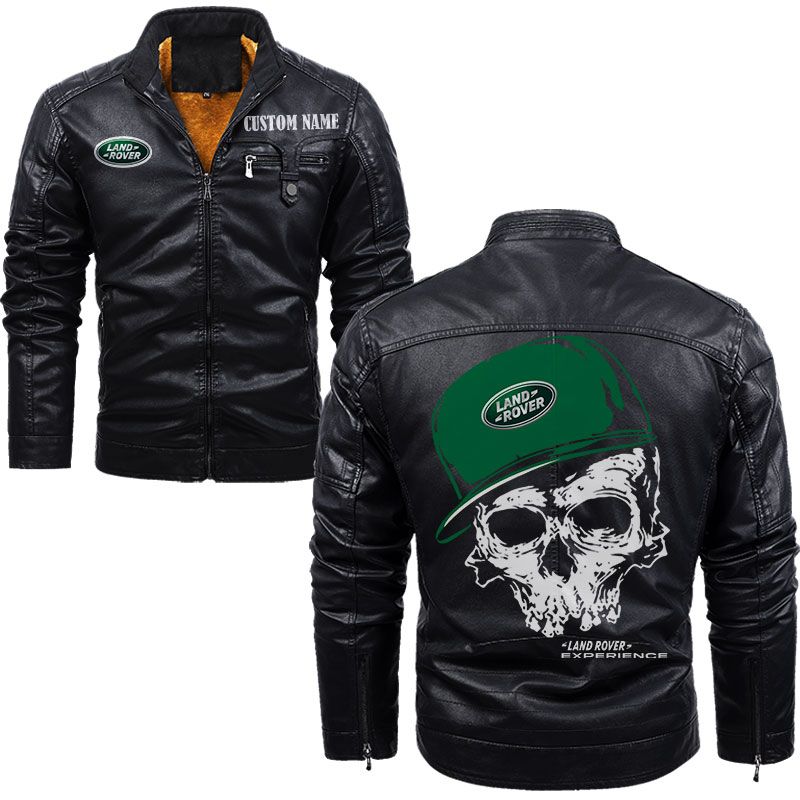 Custom Name Skull Design Land Rover Zip Pocket Fleece Leather Jacket