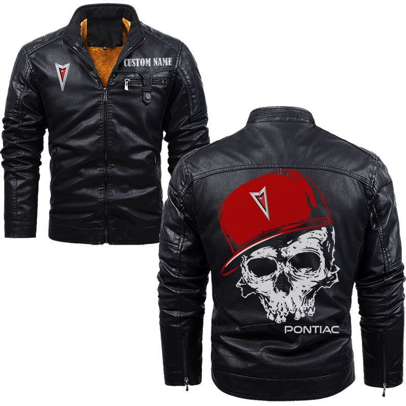 Custom Name Skull Design Pontiac Zip Pocket Fleece Leather Jacket
