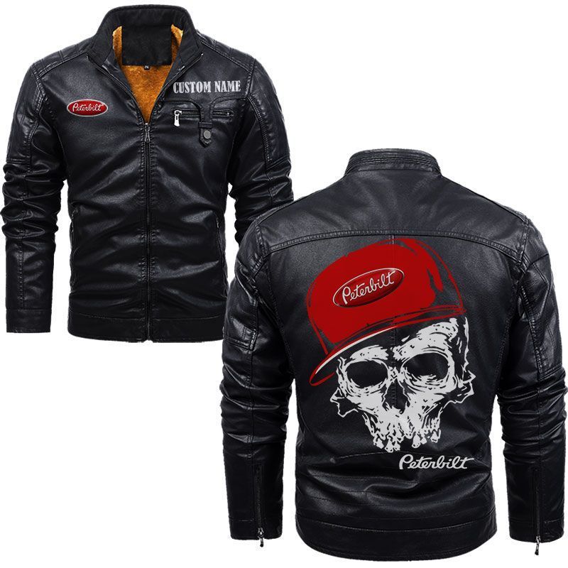 Custom Name Skull Design Peterbilt Zip Pocket Fleece Leather Jacket
