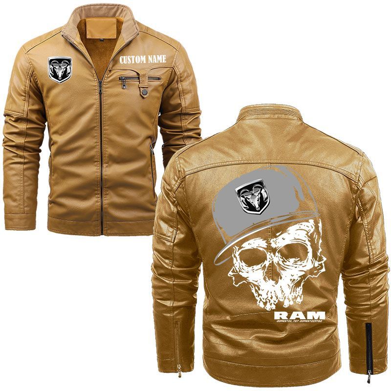 Custom Name Skull Design Ram Zip Pocket Fleece Leather Jacket