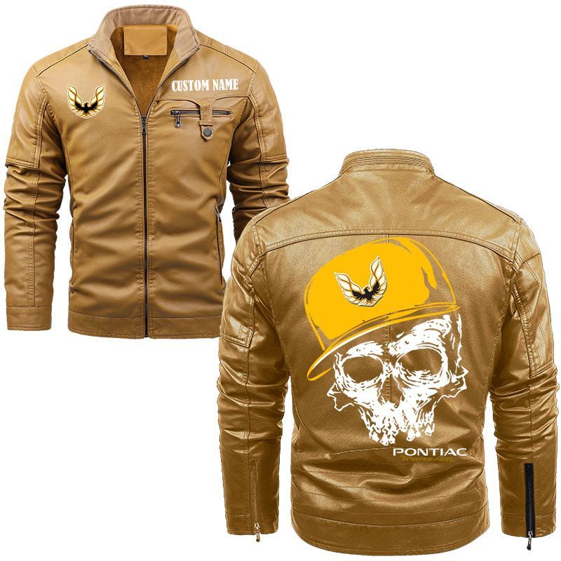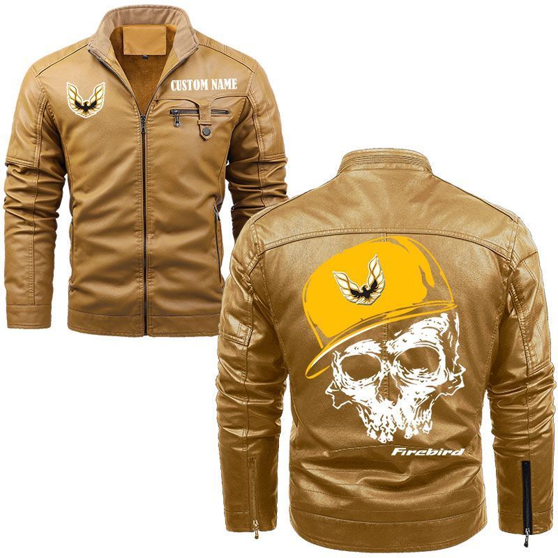 Custom Name Skull Design Pontiac Firebird Zip Pocket Fleece Leather Jacket