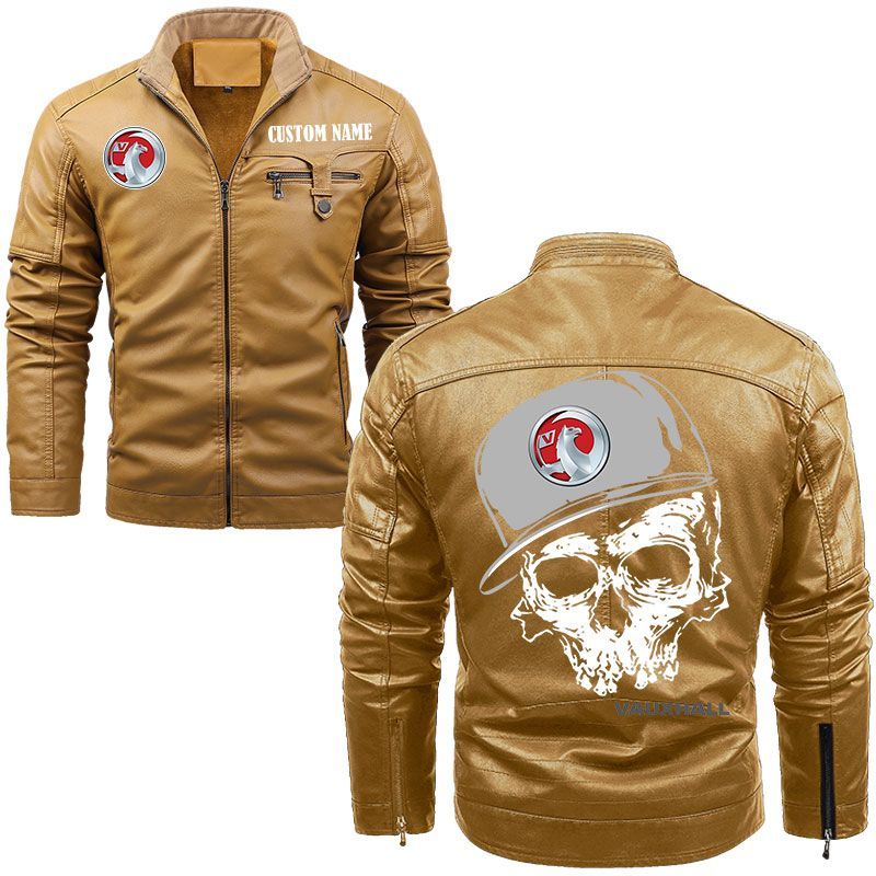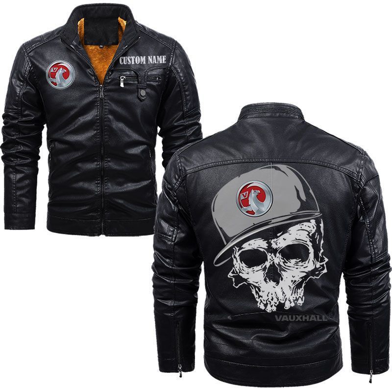 Custom Name Skull Design Vauxhall Astra Zip Pocket Fleece Leather Jacket