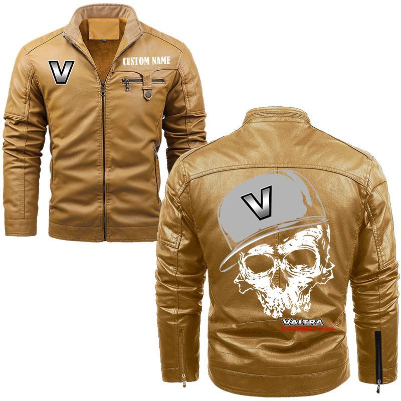 Custom Name Skull Design Valtra Zip Pocket Fleece Leather Jacket