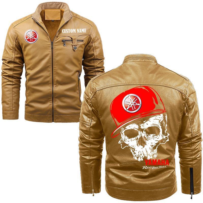 Custom Name Skull Design Yamaha Zip Pocket Fleece Leather Jacket
