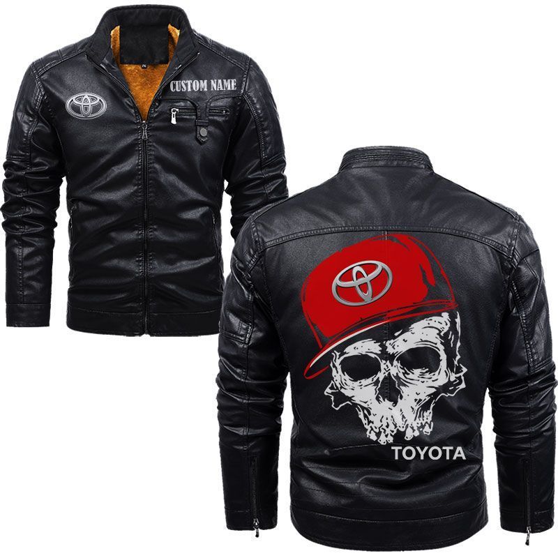 Custom Name Skull Design Toyota Motor Corporation Zip Pocket Fleece Leather Jacket