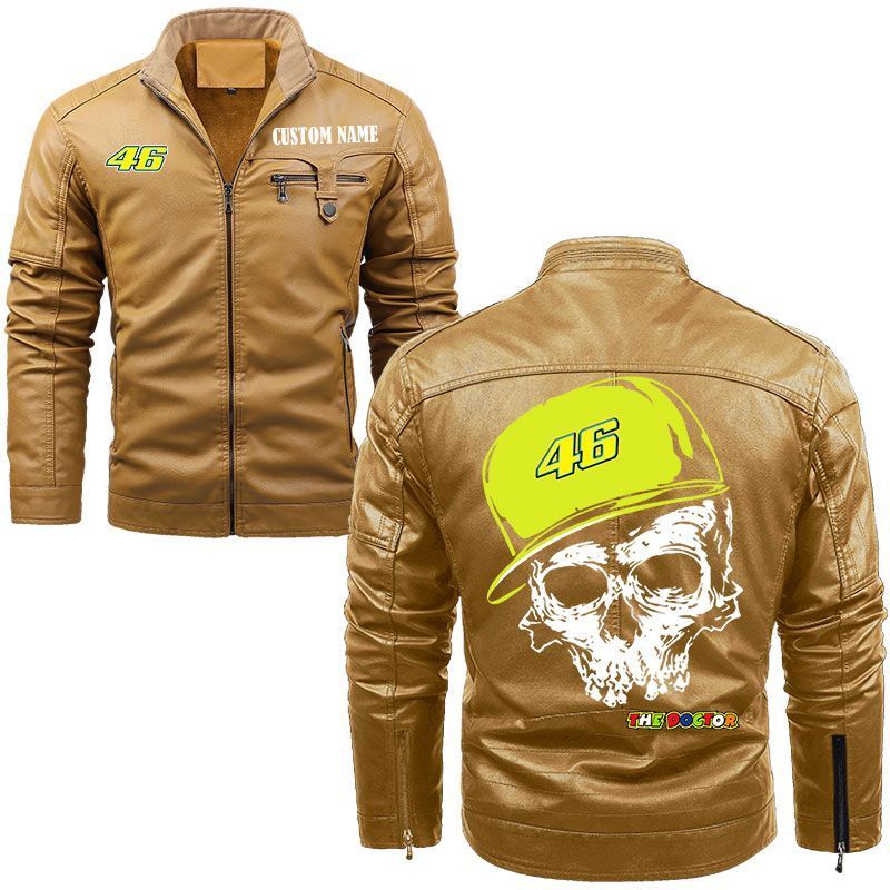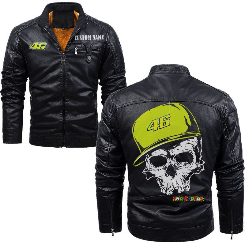 Custom Name Skull Design Valentino Rossi 46 Zip Pocket Fleece Leather Jacket