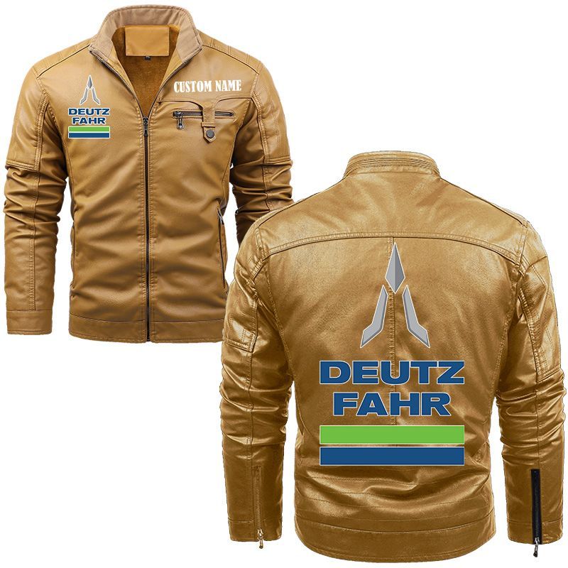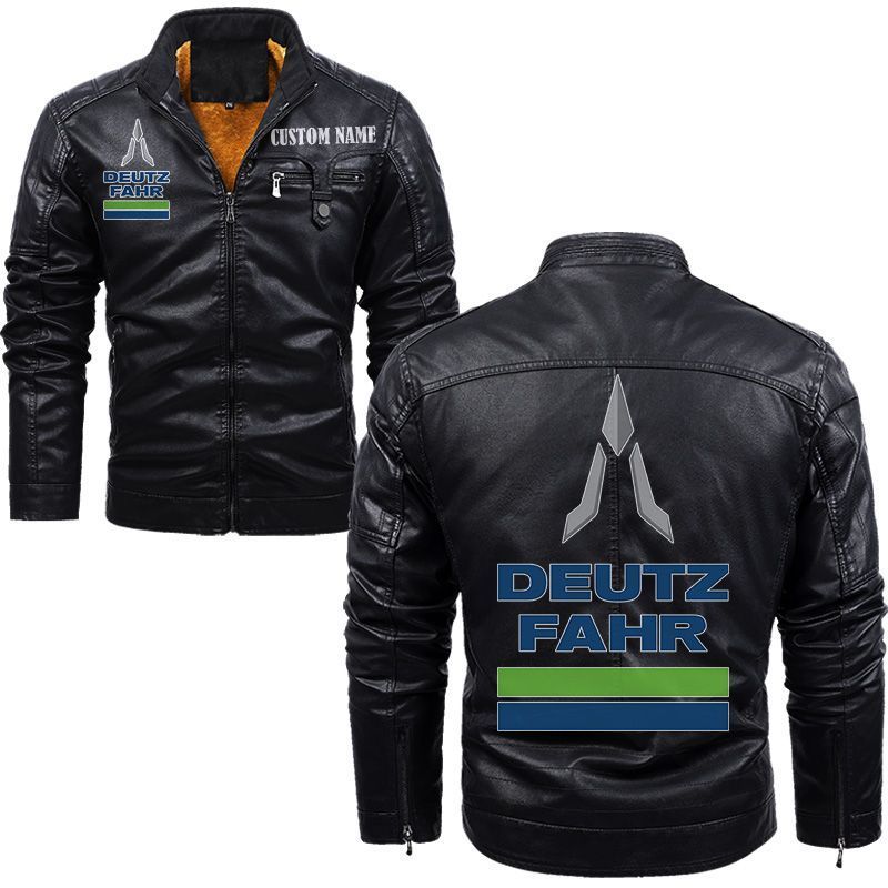 Deutz Fahr Zip Pocket Fleece Leather Jacket