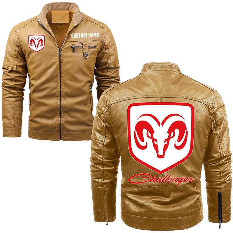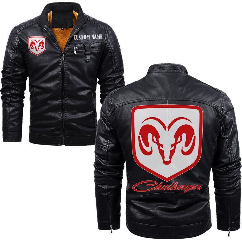 Dodge Challenger Zip Pocket Fleece Leather Jacket