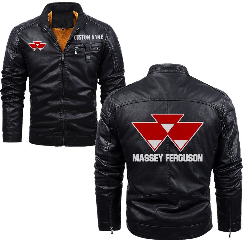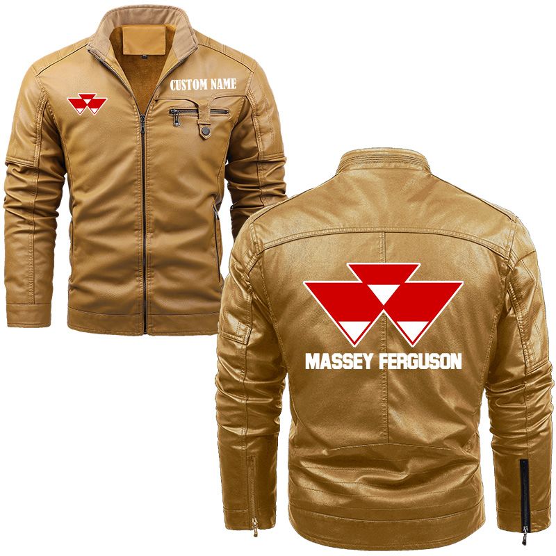 Massey Ferguson Zip Pocket Fleece Leather Jacket