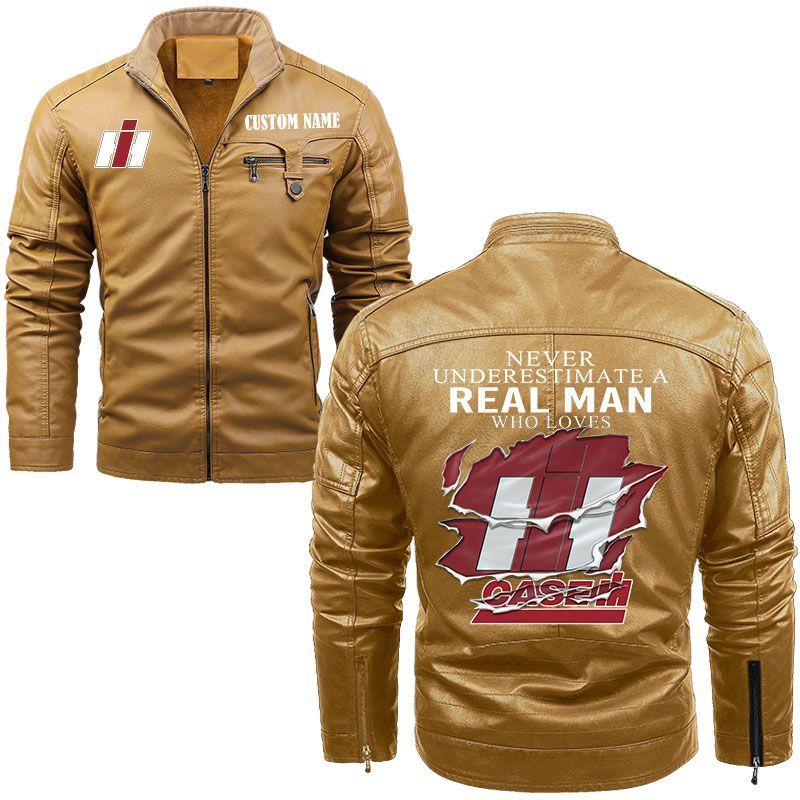 Never Underestimate A Real Man Who Loves Case IH Zip Pocket Fleece Leather Jacket