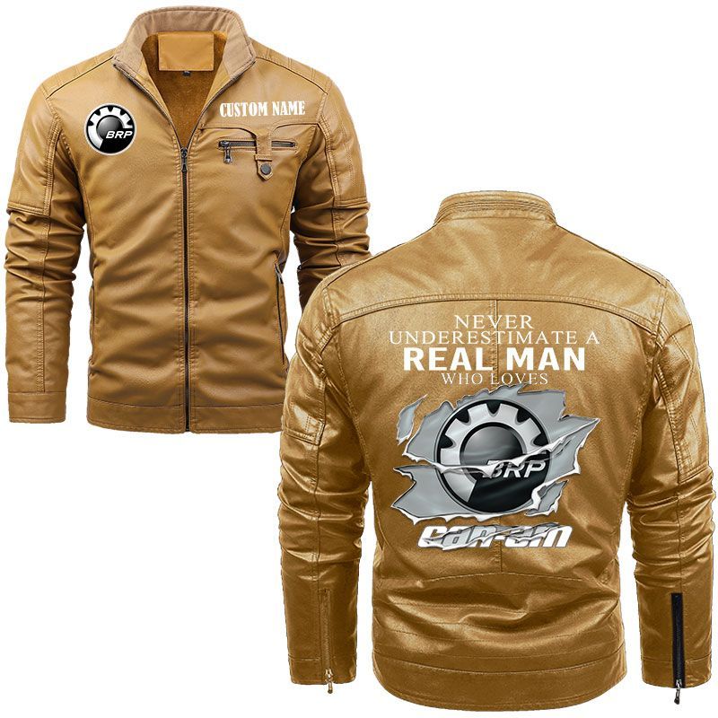Never Underestimate A Real Man Who Loves Can Am motorcycles Zip Pocket Fleece Leather Jacket