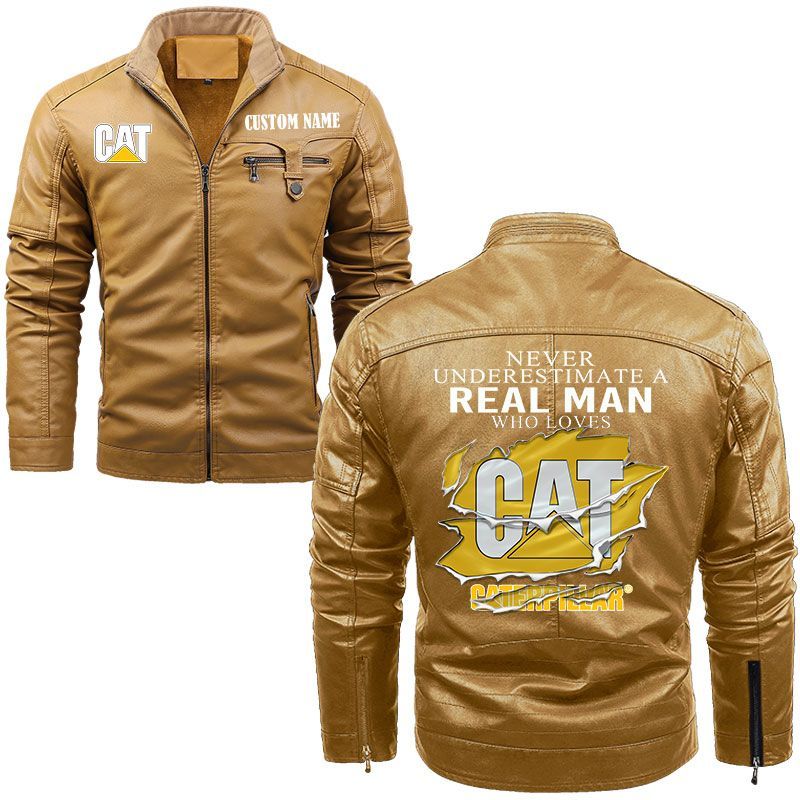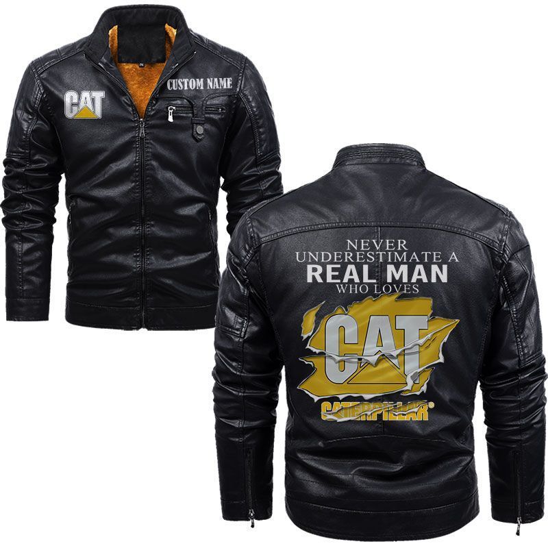 Never Underestimate A Real Man Who Loves Caterpillar Inc Zip Pocket Fleece Leather Jacket