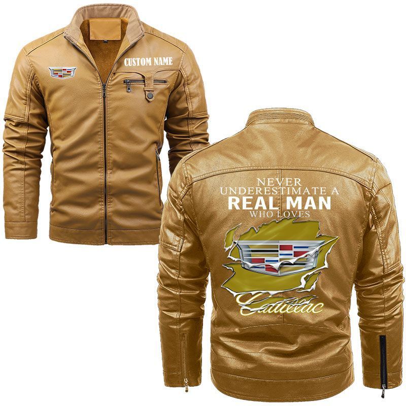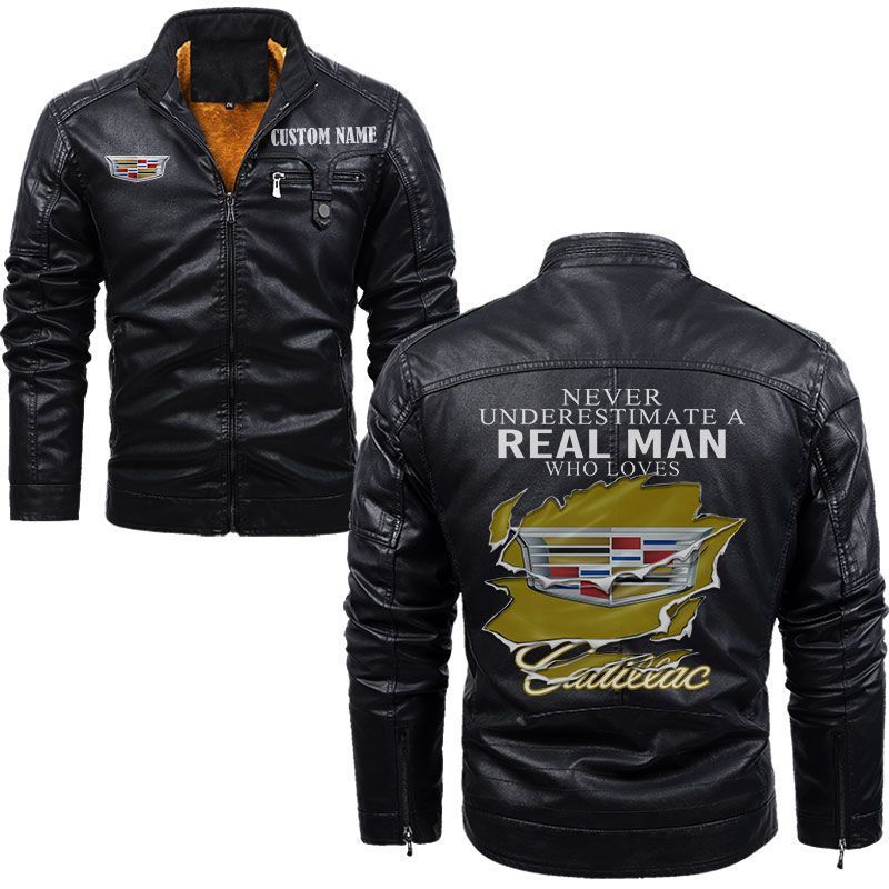 Never Underestimate A Real Man Who Loves Cadillac Zip Pocket Fleece Leather Jacket
