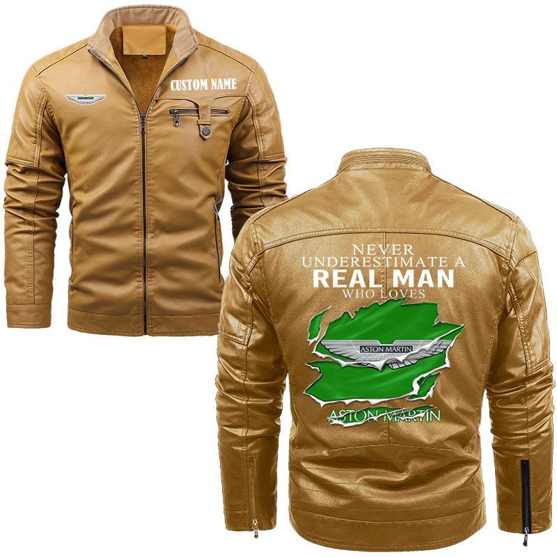 Never Underestimate A Real Man Who Loves Aston Martin Zip Pocket Fleece Leather Jacket