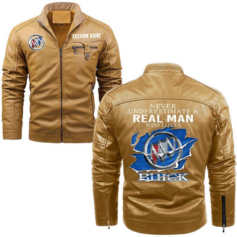 Never Underestimate A Real Man Who Loves Buick Zip Pocket Fleece Leather Jacket