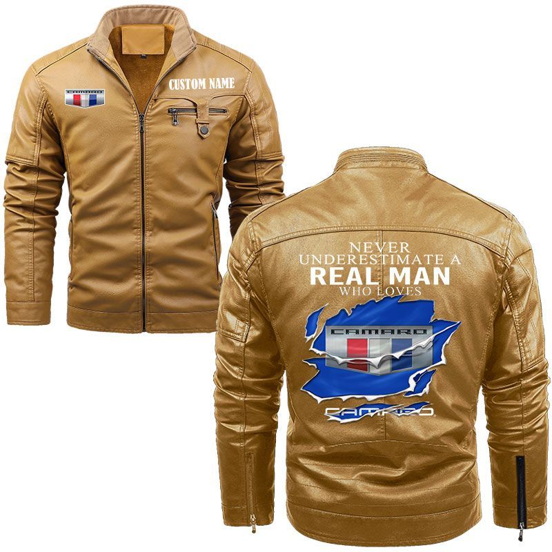 Never Underestimate A Real Man Who Loves Chevrolet Camaro Zip Pocket Fleece Leather Jacket