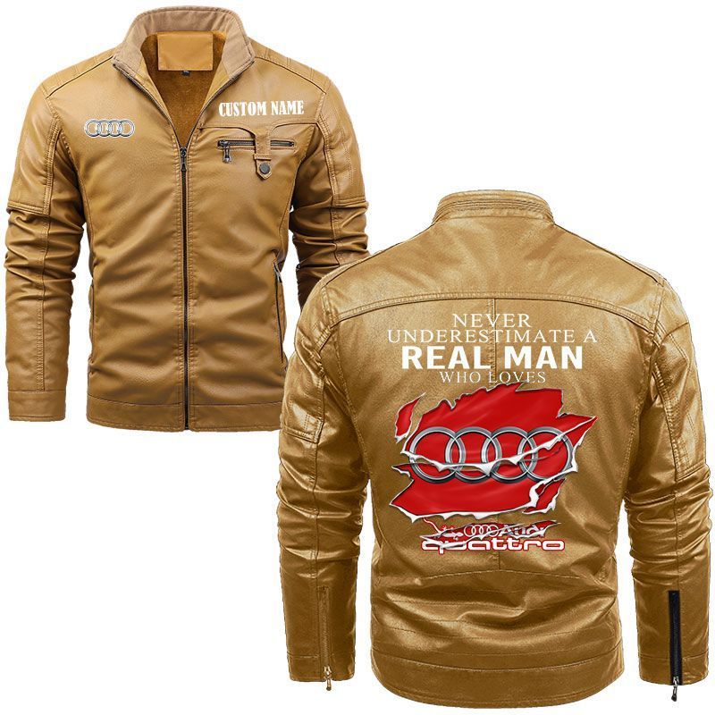 Never Underestimate A Real Man Who Loves Audi-logo Zip Pocket Fleece Leather Jacket