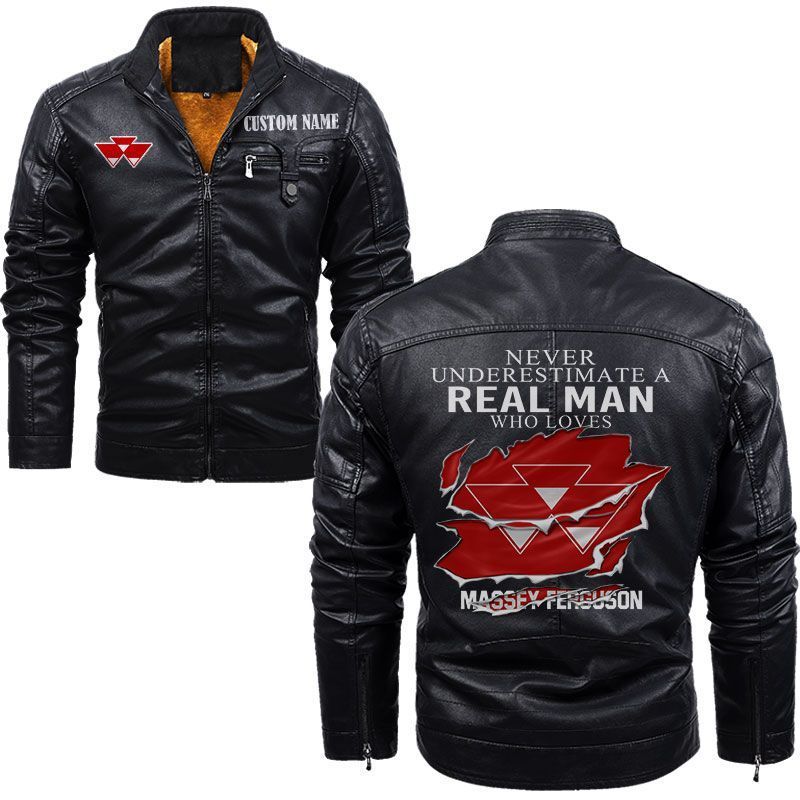 Never Underestimate A Real Man Who Loves Massey Ferguson Zip Pocket Fleece Leather Jacket