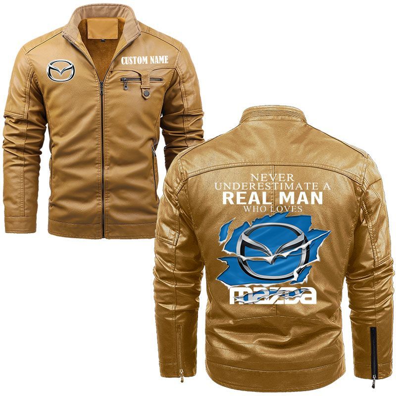 Never Underestimate A Real Man Who Loves Mazda Zip Pocket Fleece Leather Jacket