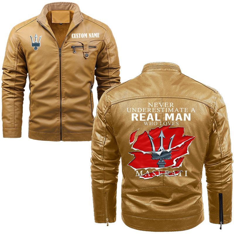 Never Underestimate A Real Man Who Loves Maserati Zip Pocket Fleece Leather Jacket
