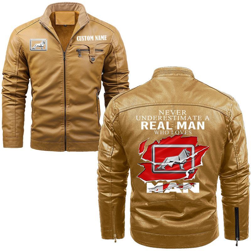 Never Underestimate A Real Man Who Loves Man Zip Pocket Fleece Leather Jacket