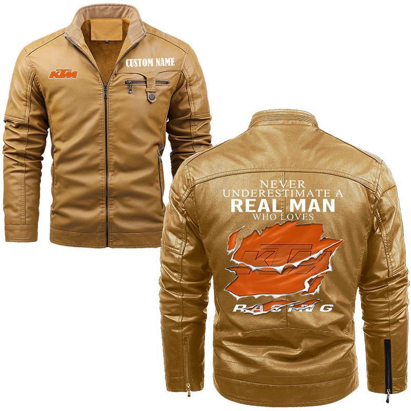 Never Underestimate A Real Man Who Loves KTM Zip Pocket Fleece Leather Jacket