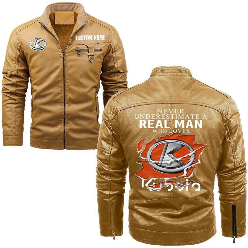 Never Underestimate A Real Man Who Loves Kubota Zip Pocket Fleece Leather Jacket