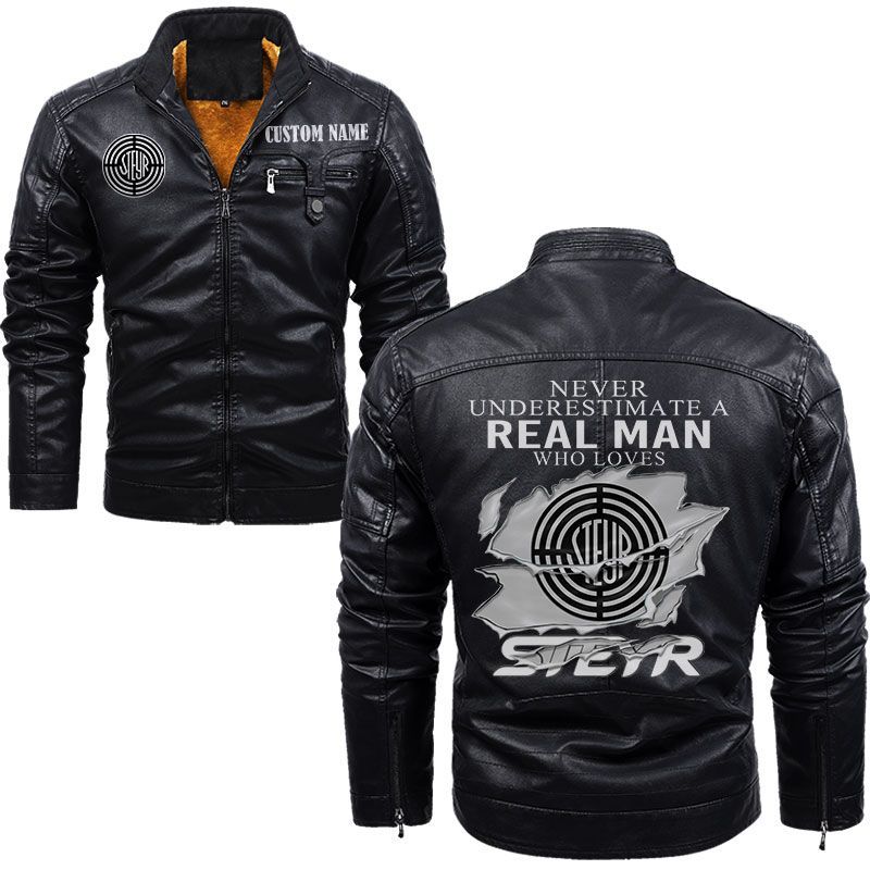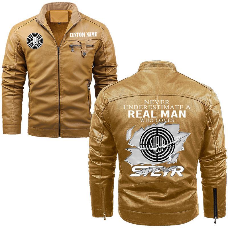 Never Underestimate A Real Man Who Loves Steyr Tractor Zip Pocket Fleece Leather Jacket