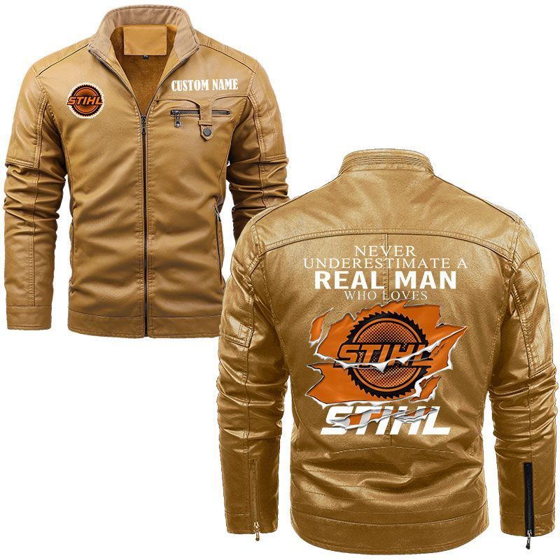 Never Underestimate A Real Man Who Loves Stihl Zip Pocket Fleece Leather Jacket