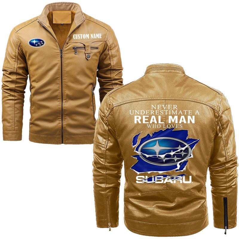 Never Underestimate A Real Man Who Loves Subaru Zip Pocket Fleece Leather Jacket
