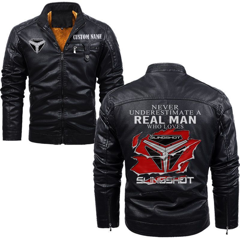 Never Underestimate A Real Man Who Loves Slingshort Zip Pocket Fleece Leather Jacket