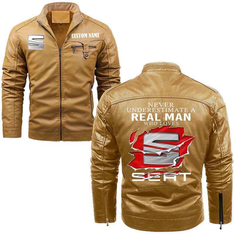 Never Underestimate A Real Man Who Loves SEAT Zip Pocket Fleece Leather Jacket