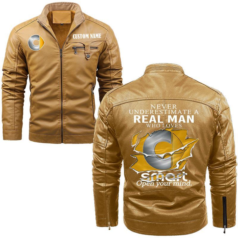 Never Underestimate A Real Man Who Loves Smart Zip Pocket Fleece Leather Jacket