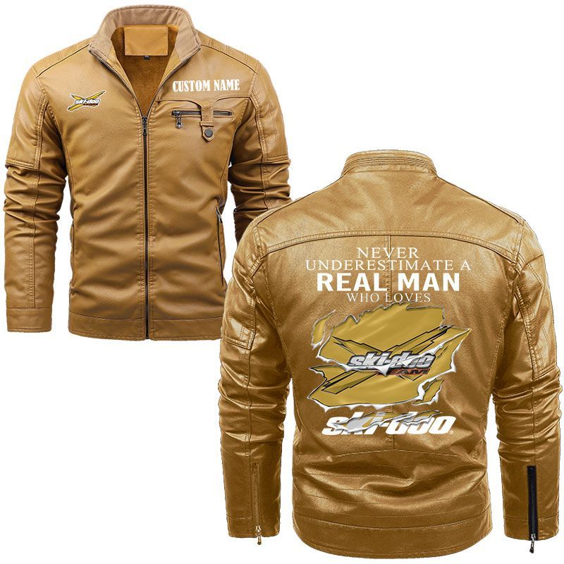 Never Underestimate A Real Man Who Loves Ski Doo Zip Pocket Fleece Leather Jacket
