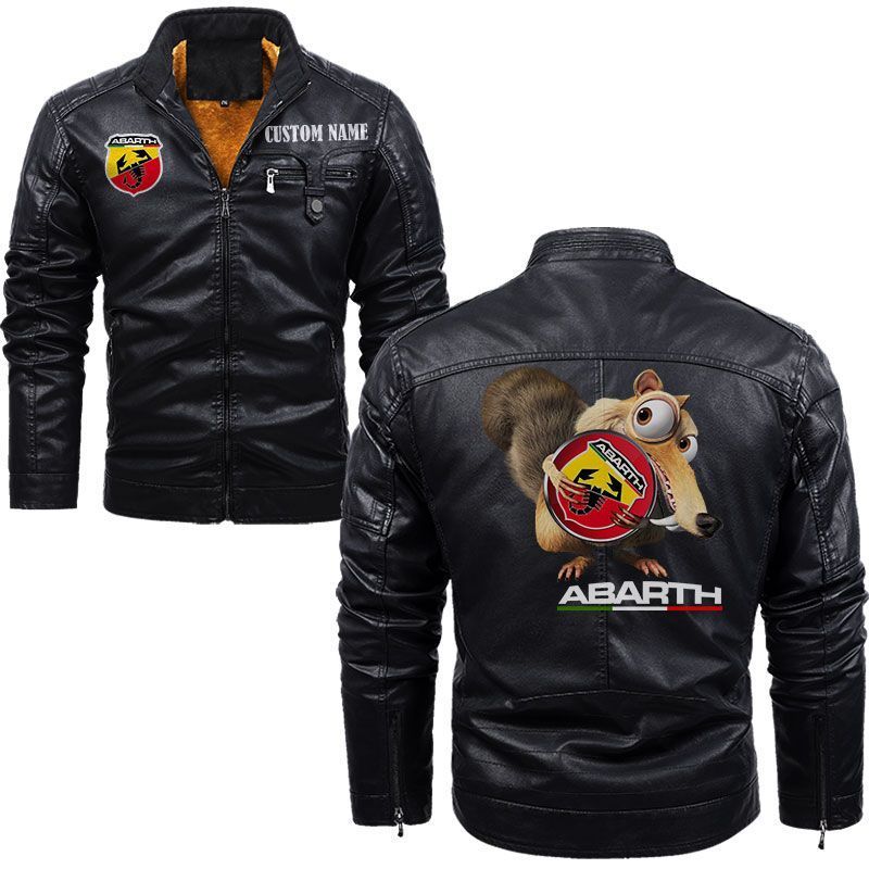 Scrat Squirrel In Ice Age Abarth Zip Pocket Fleece Leather Jacket